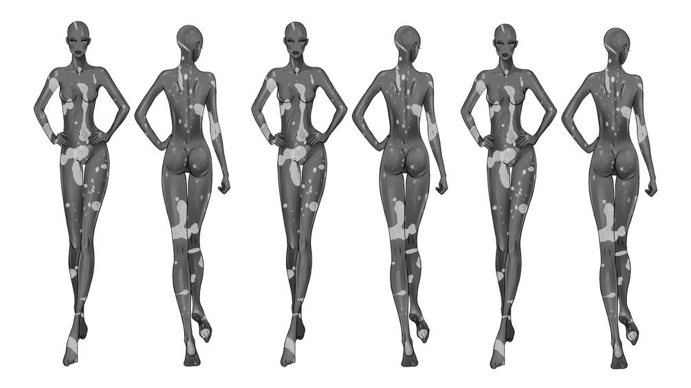• Fashion design croquis figure/template pack - 3 colored Fron + Back Fashion figure templates !